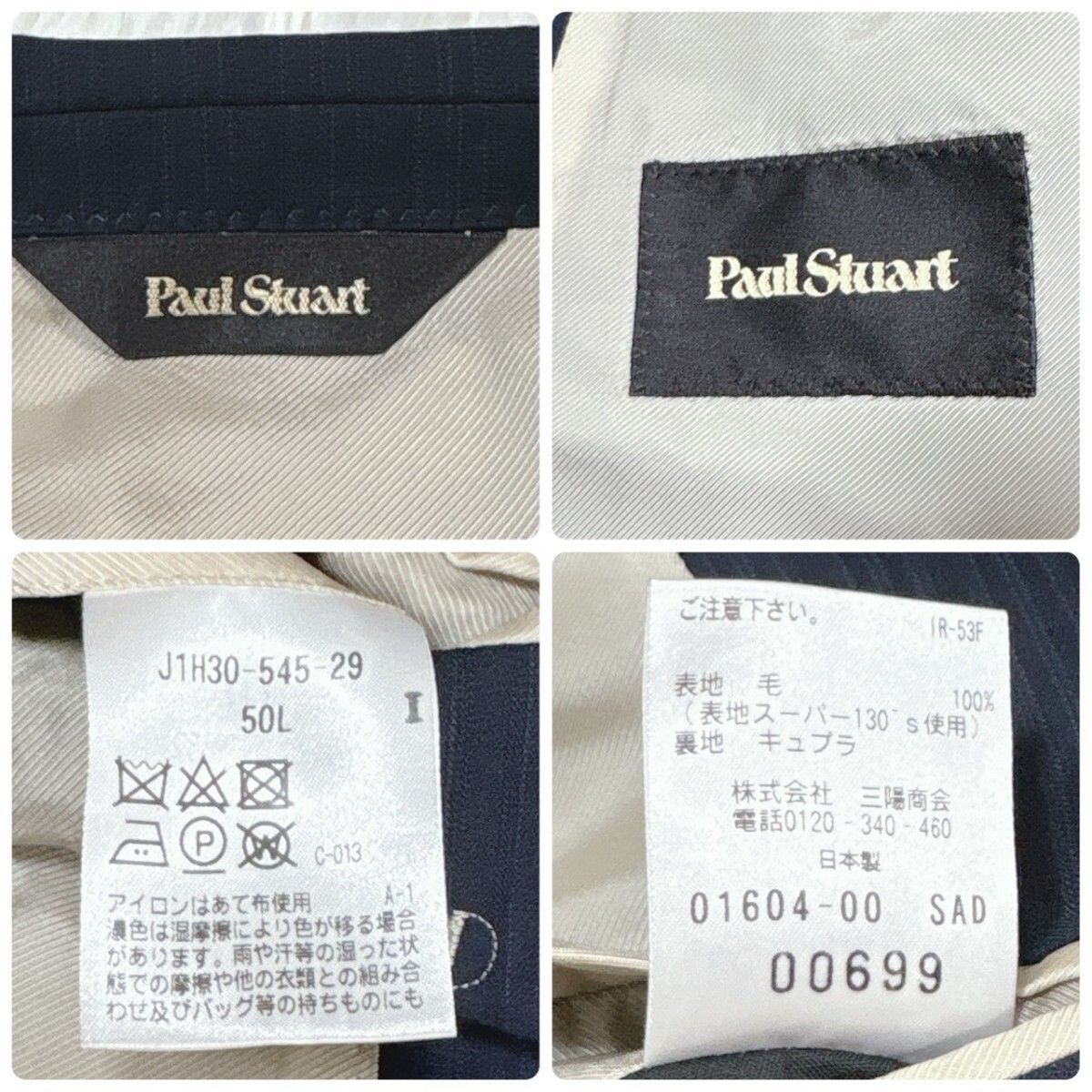 XL Super130’s Paul Stuart ポールスチュアート スーツ セットアップ ウール ネイビー 濃紺 50L ビジネス メンズ WWW_NICORILABO_COM