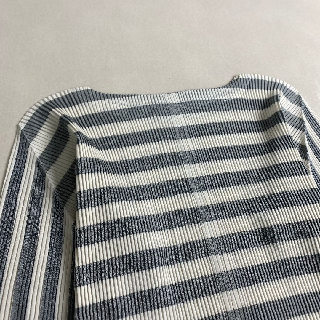 イッセイミヤケ カットソー ボーダー プリーツ M ISSEY MIYAKE グレー×ホワイトの検索結果