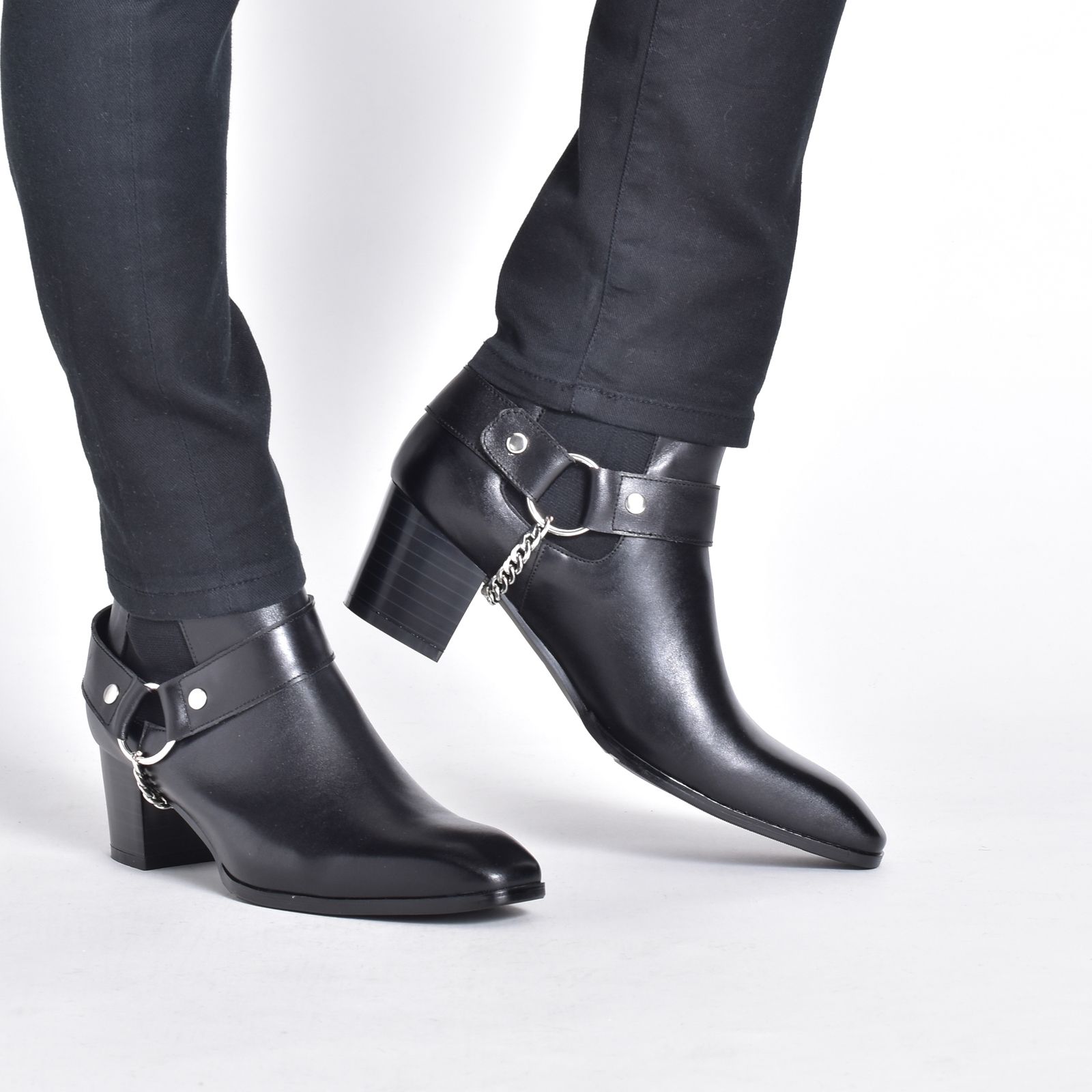 ♥ チェーンブーツ 3E エンデバイス ヒールブーツ サイドゴアブーツ メンズブーツ リング レザー 厚底 モード系 デザインブーツ 上品 ポインテッドトゥ ヒール ヒールアップブーツ クール 秋冬 シンプル ブラック 黒 ELB660-2-S WWW_NICORILABO_COM