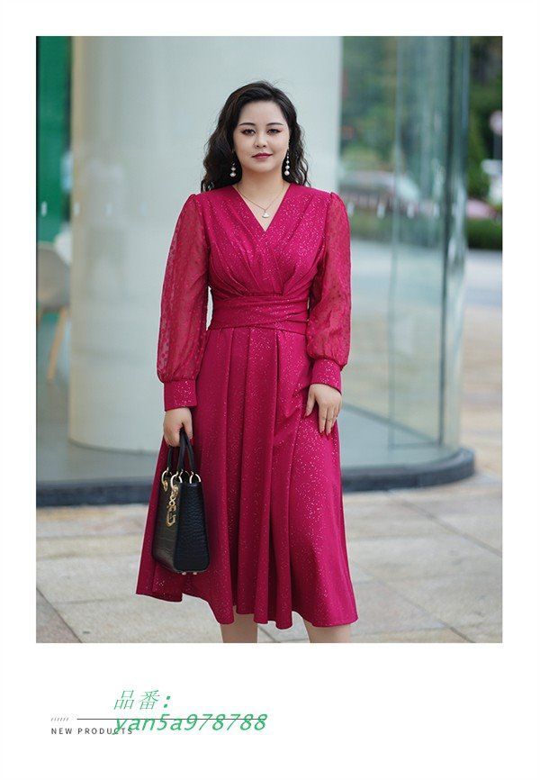 ワンピース ぽっちゃり ドレス ミモレ丈 袖あり 長袖 きれいめ パーティードレス 大きいサイズ レディース Aライン ワンピ 秋 春 Vネック yan5a978788 WWW_NICORILABO_COM