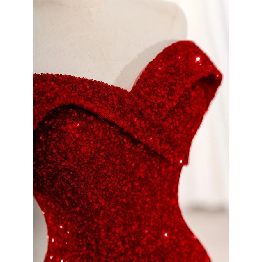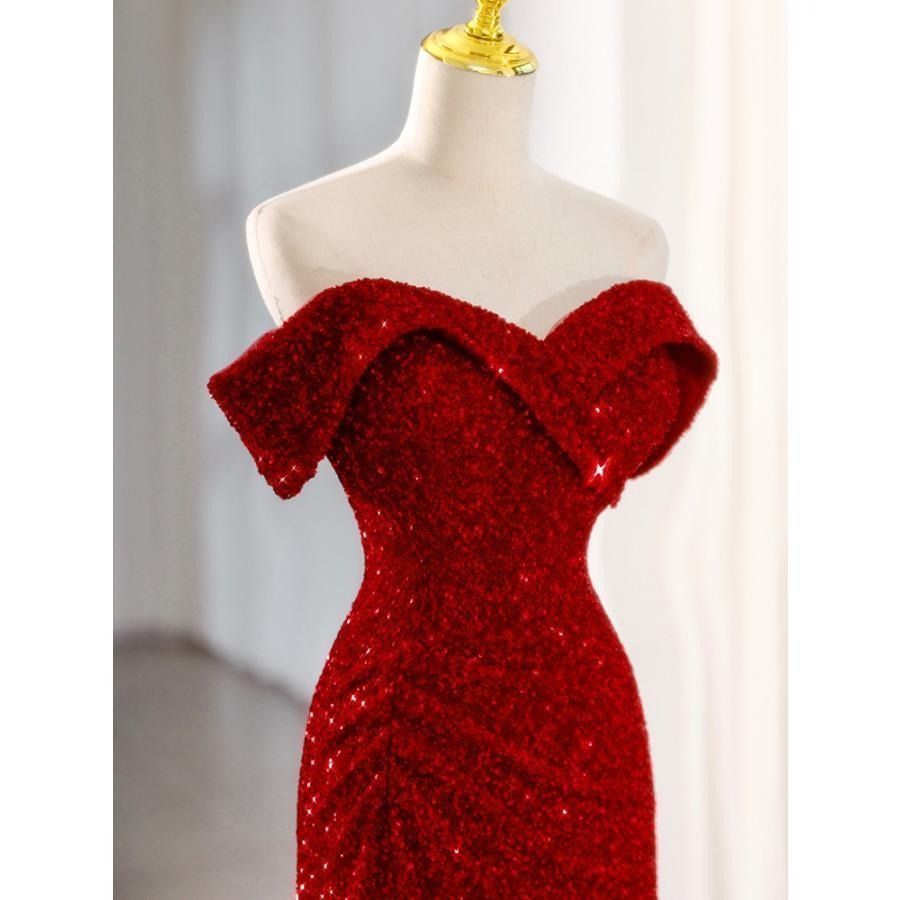 スパンコール オフショルダー 赤 パーティードレス ロングドレス マーメイドドレス 結婚式 二次会 発表会 ウェディングドレス 花嫁 ステージドレス WWW_NICORILABO_COM