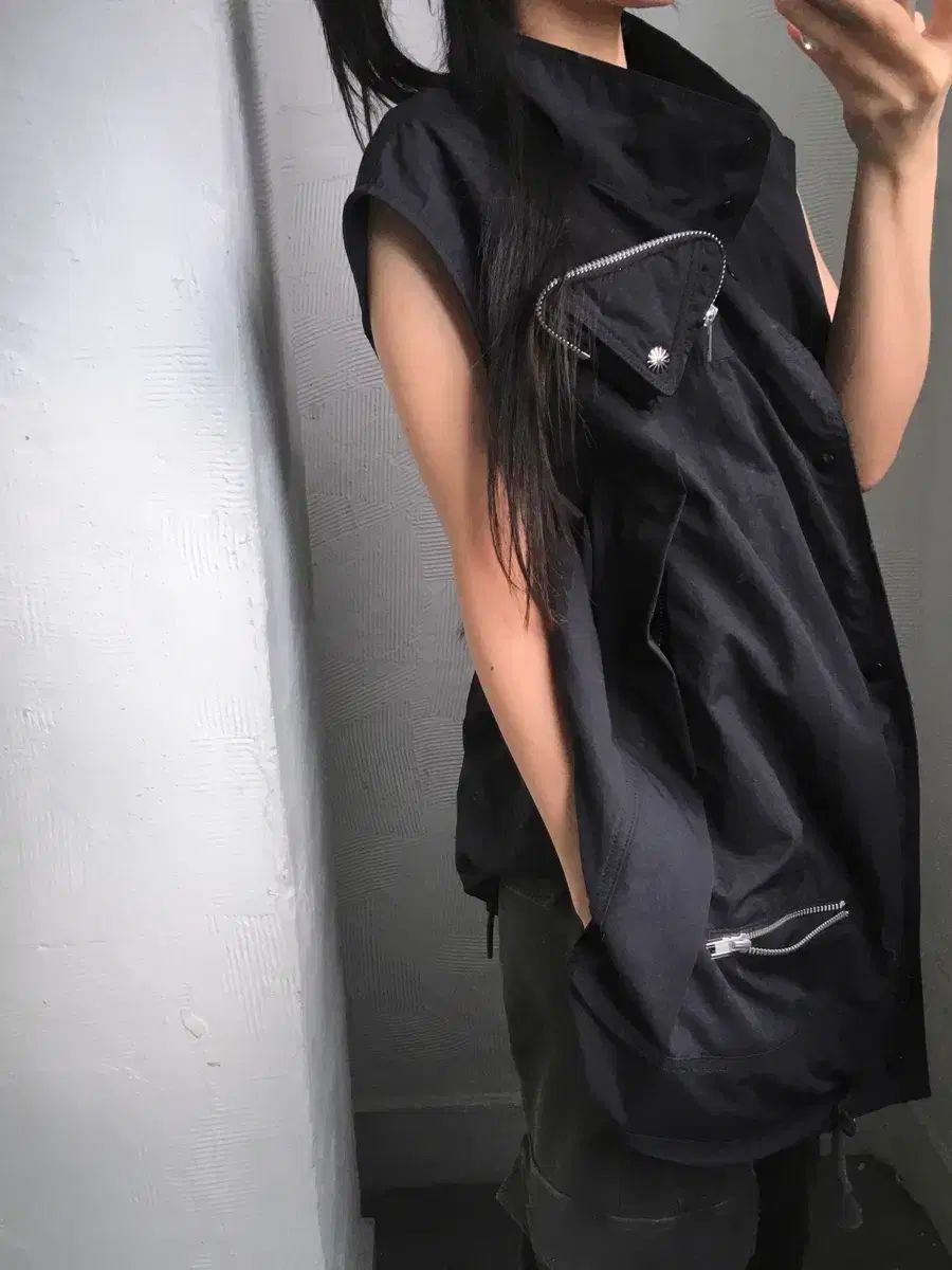 ポケット ディテール が ポイント になる ナイロン ベストで、多様な トップス と コーデ しやすいです。