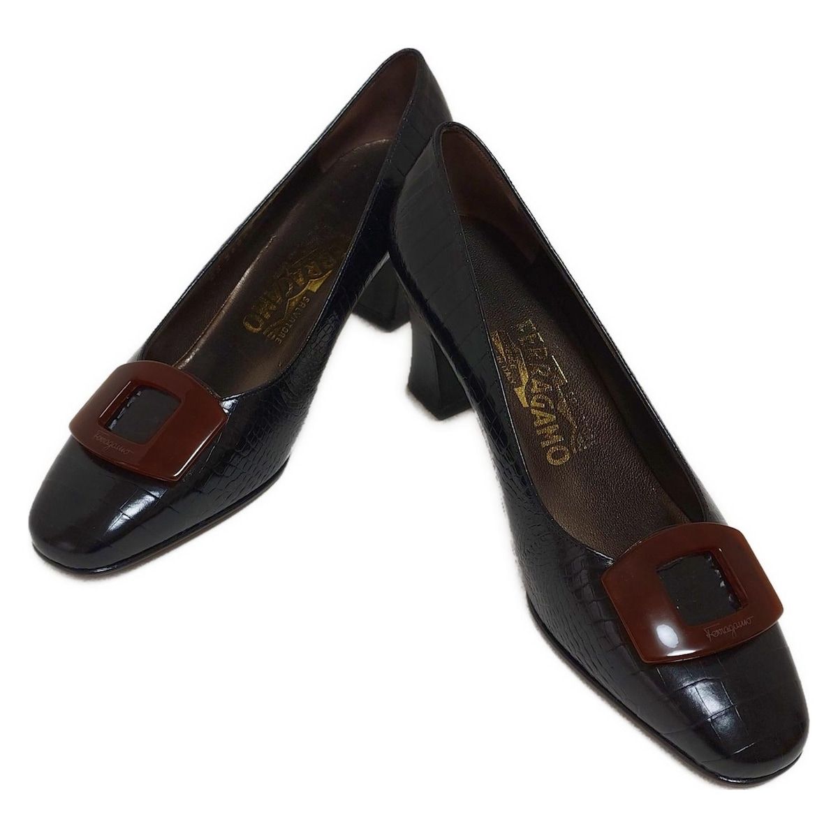 FERRAGAMO|SalvatoreFerragamo サルバトーレフェラガモ パンプス 7 D レディース - 黒 型押し加工 レザー WWW_NICORILABO_COM