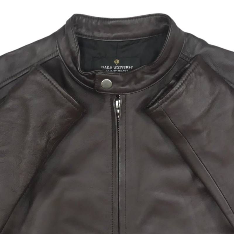 nano universe ナノユニバース ライダースジャケット S 羊革 ラムレザー 本革 シングル メンズ レザージャケット 茶 ブラウン 立襟 スタンド バイクレザー ライダースジャケット_サイズS一覧←SEULB屋着古← TY4052の検索結果