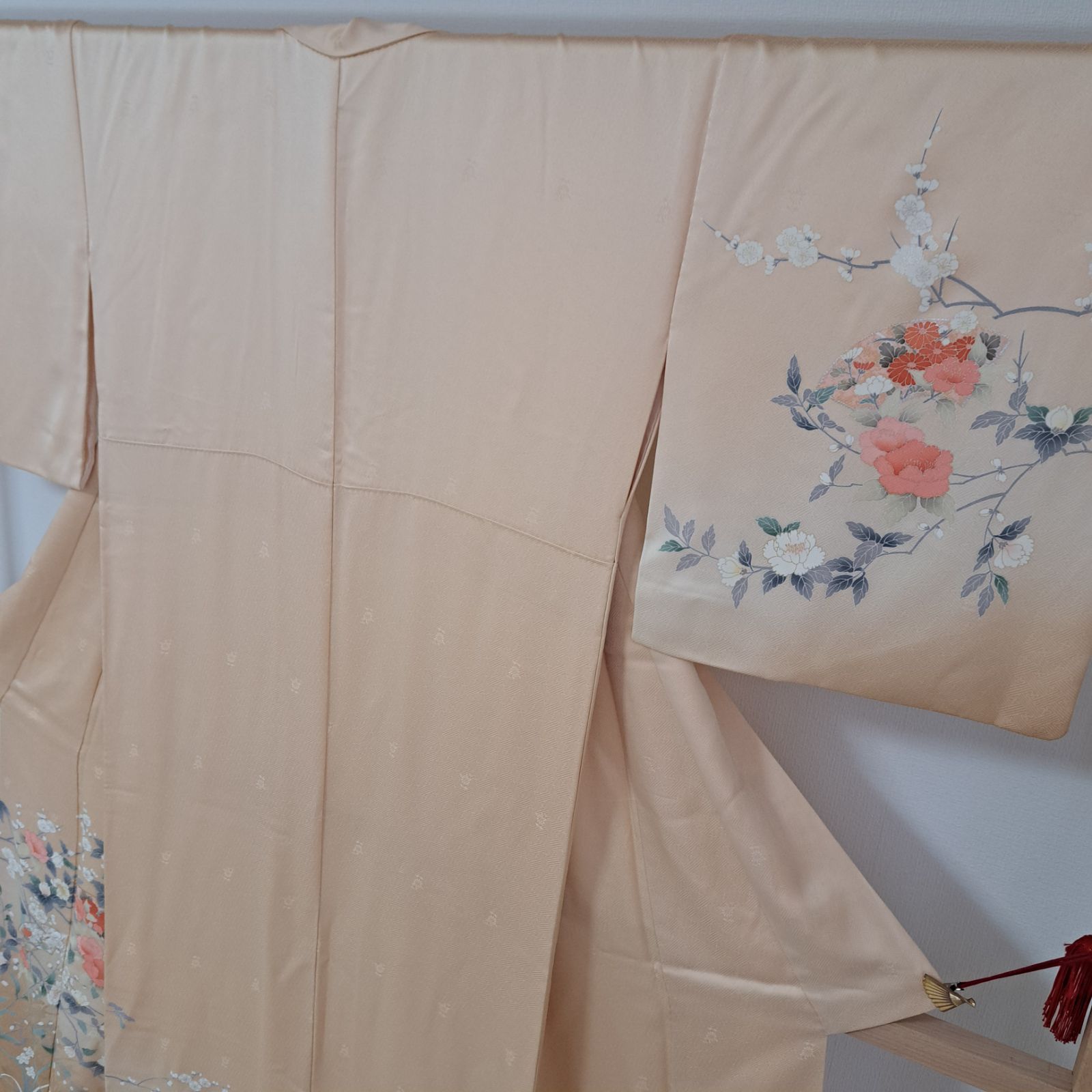 訪問着 裄69 身丈167.5 袖48.5 作家物 正絹 袷 うすだいだい地に四季花柄 め17S07 k2517の検索結果