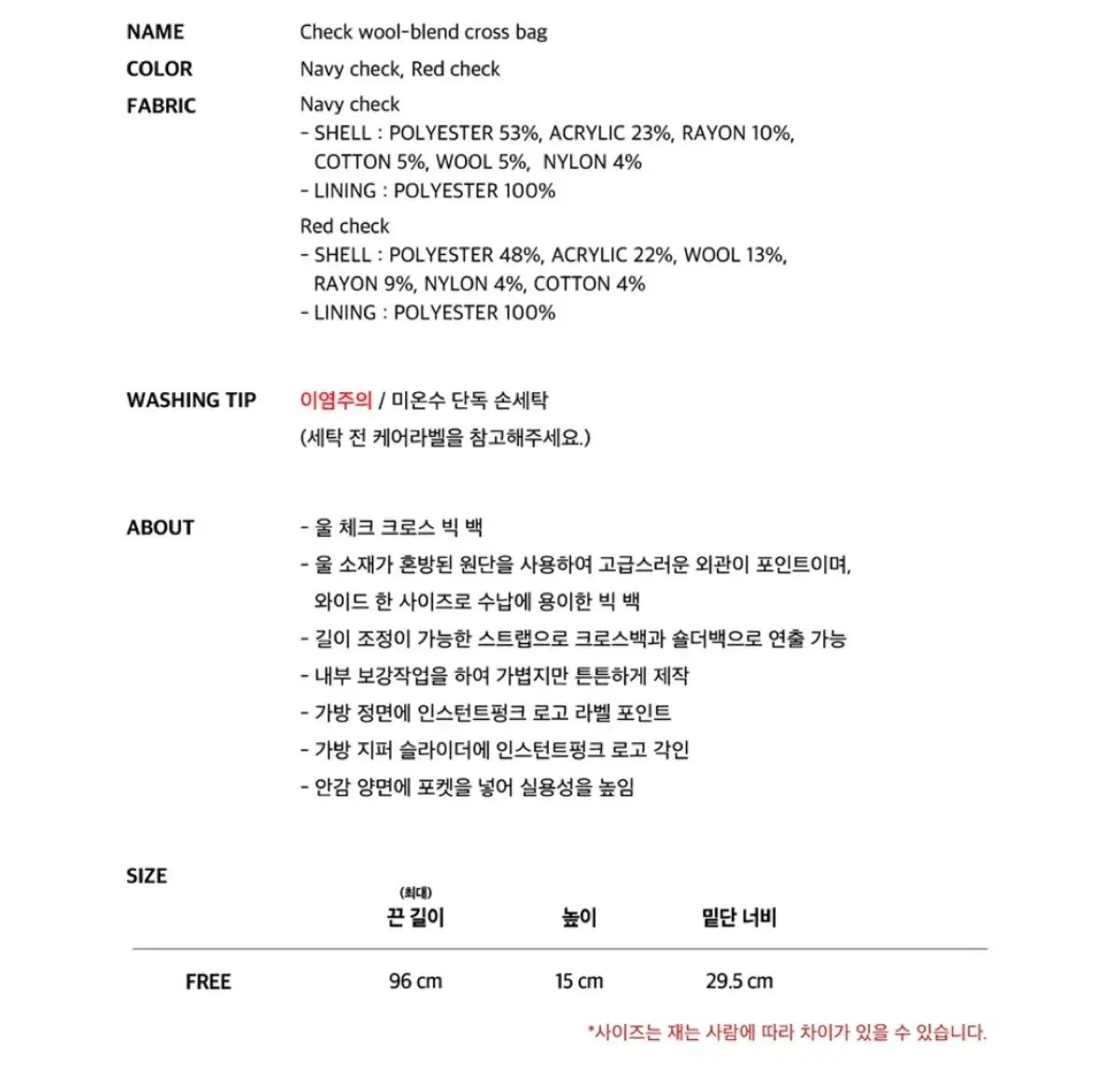 インスタントパンク チェック ウール クロスバックの検索結果