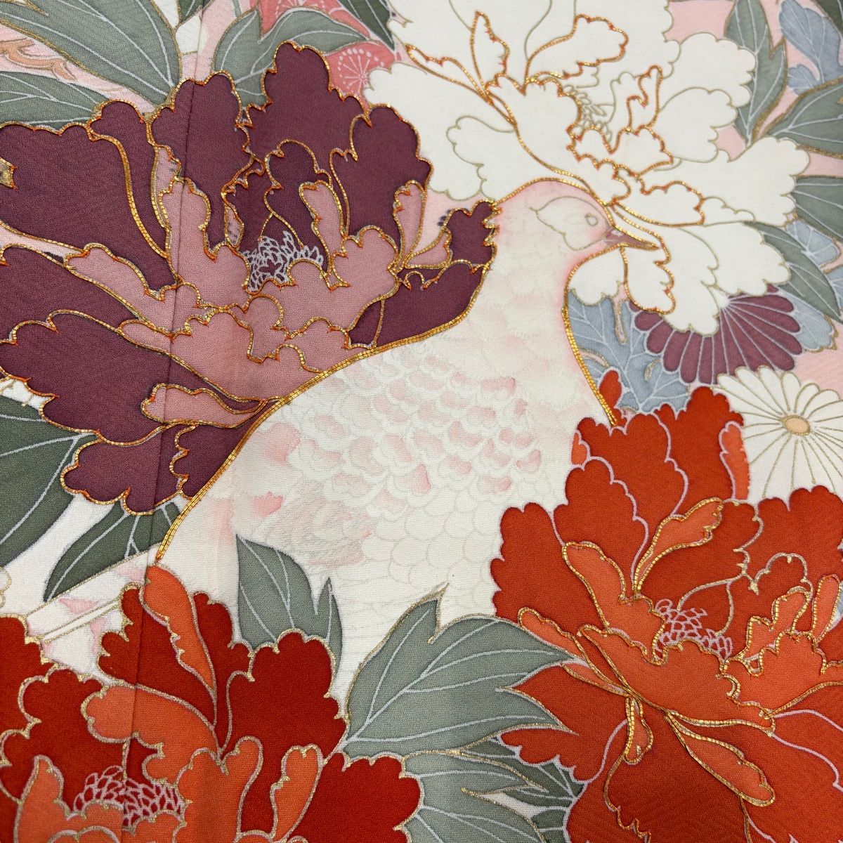 振袖 身丈167.5cm 裄丈67cm M 袷 牡丹 鳥 金糸 金銀彩 クリーム 正絹 秀品の検索結果
