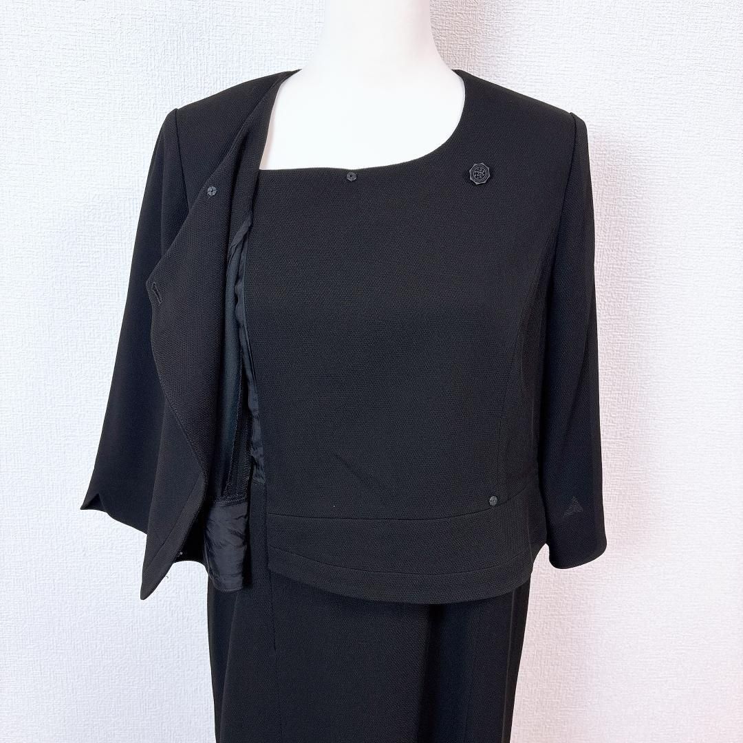 東京ソワール TOKYO SOIR ワンピーススーツセットアップ 冠婚葬祭 2点セット お受験スーツ ノーカラージャケット ブラック 大きいサイズ15