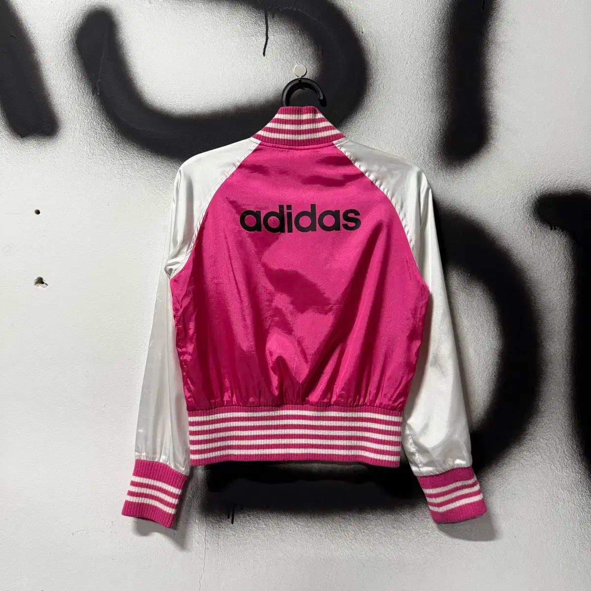 adidas 白 ピンク バイカラー オールドスクール クロップド ジップアップ ブルゾン ジャケット WWW_NICORILABO_COM