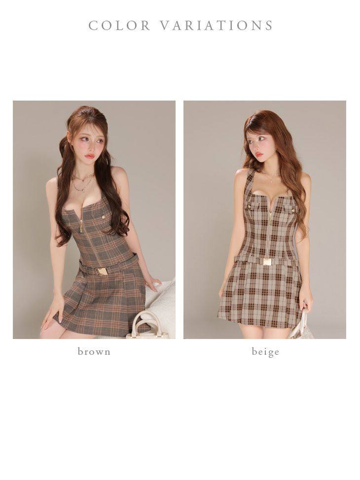 ブラウン DE4618-BE-2510 DEA.|ディア DEA. by ROBE de FLEURS|ディアバイローブドフルール DEA.|ディア Vカット| ジップ| チェック柄| フ | ミニドレス| キャバドレス| ナイトドレス WWW_NICORILABO_COM