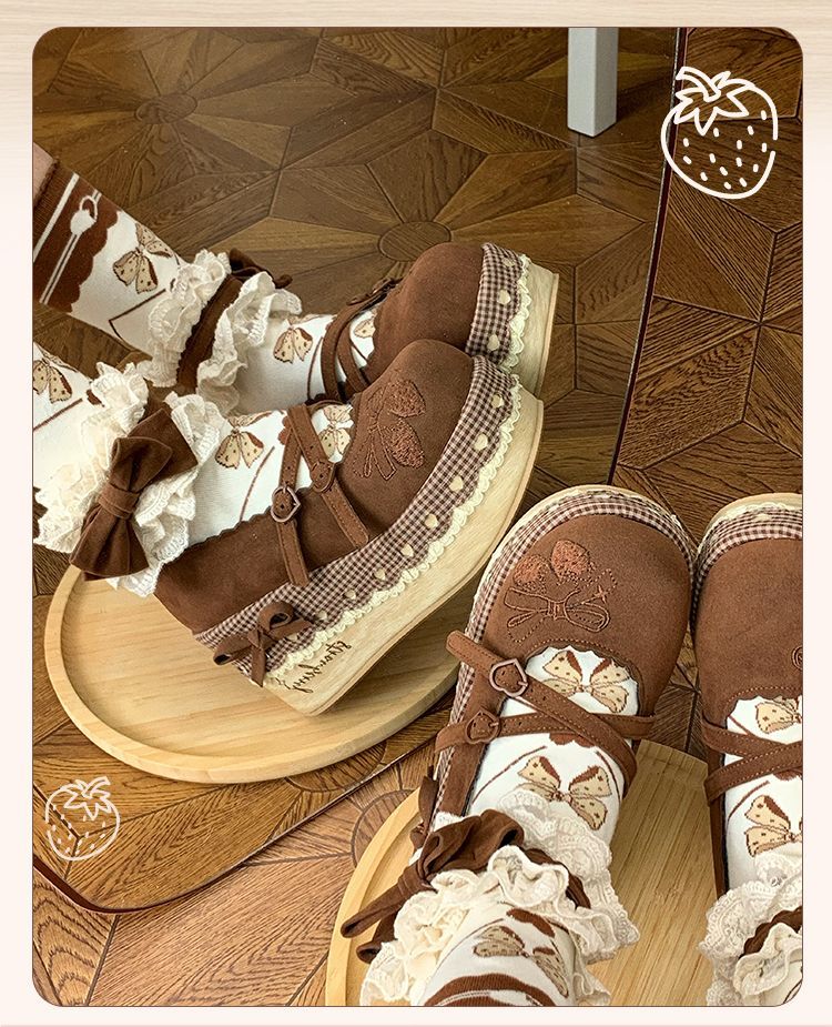 8cmヒール高さ 木目調 厚底 ロリータ シューズ 田園風 可愛い アンティークスタイル ラウンドトゥ フェミニン ロマンチック ロリータファッション シューズ WWW_NICORILABO_COM