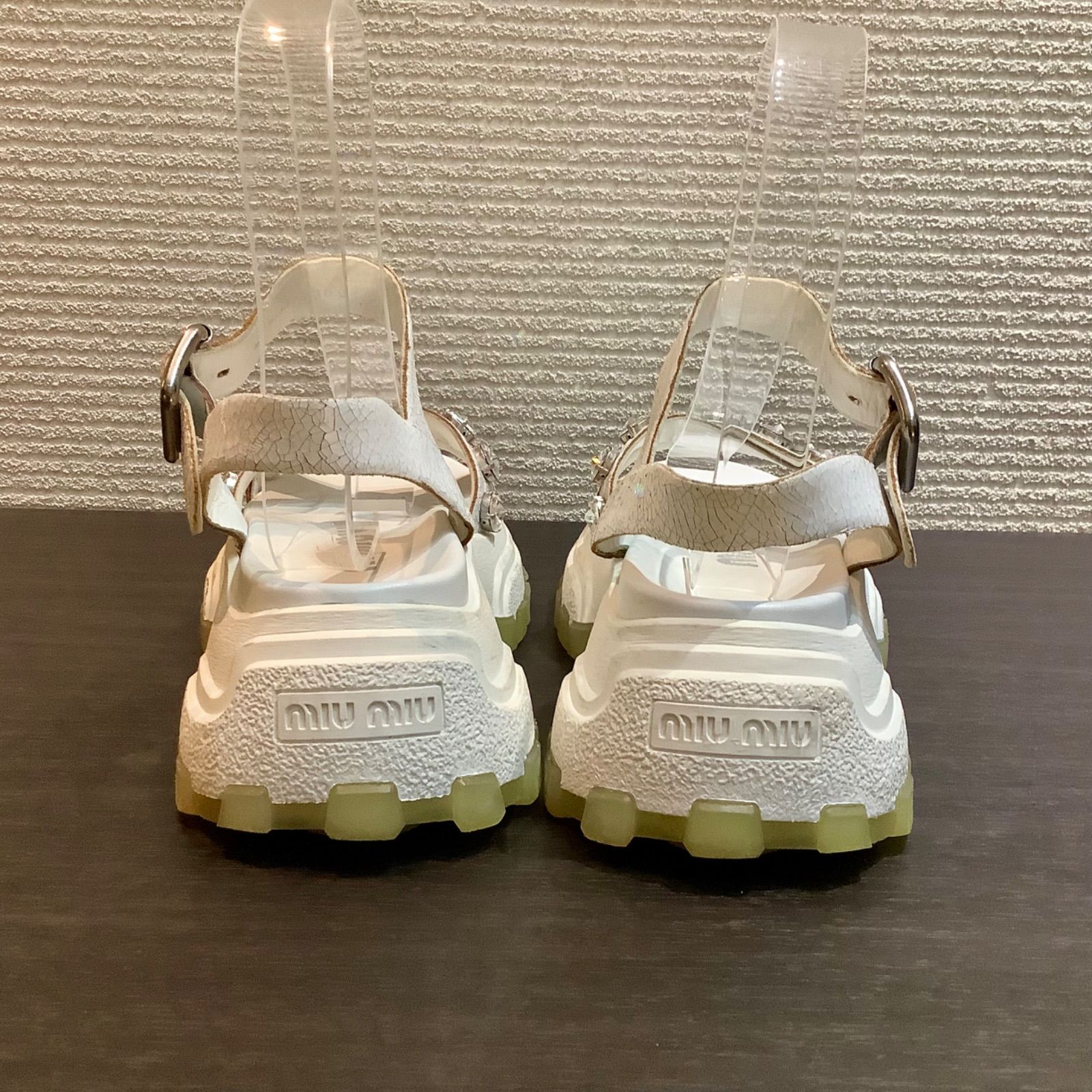 ミュウミュウ MIUMIU 厚底 ラインストーン ビジュー スポーツ サンダル シューズ ボリュームソール 白 ホワイト 36.5 E1007|T27 WWW_NICORILABO_COM