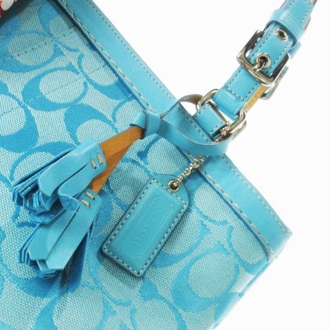 コーチ COACH ハンドバッグ キャンバス レザー 革 スエード シグネチャー タッセル スカーフ付き 青 ブルー LO4M-6830 |CK20 GY18 WWW_NICORILABO_COM