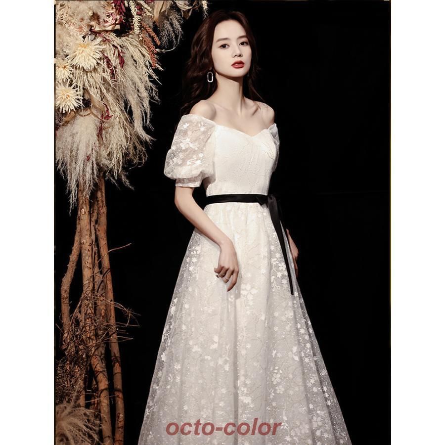 iPhone前撮りドレスオフショルダー二次会ドレス花嫁オフショルウェディングドレス前撮りドレス花嫁かわいい花嫁二