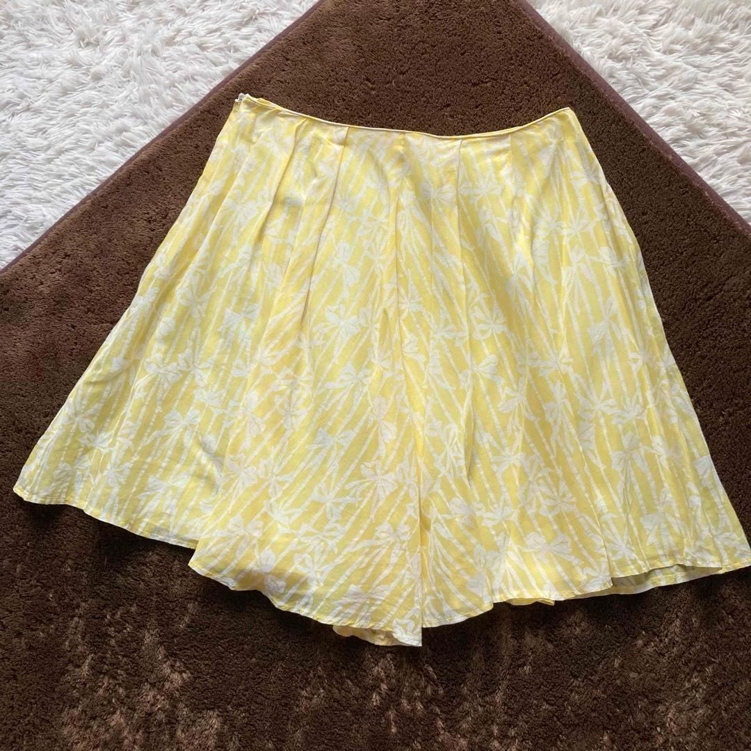BLUGIRL BLUMARINE ブルーガール ブルマリン フ スカート Aライン りぼん柄 総柄 シアー シースルー コットンシルク イタリア製 イエロー ホワイト I38|D32サイズ WWW_NICORILABO_COM