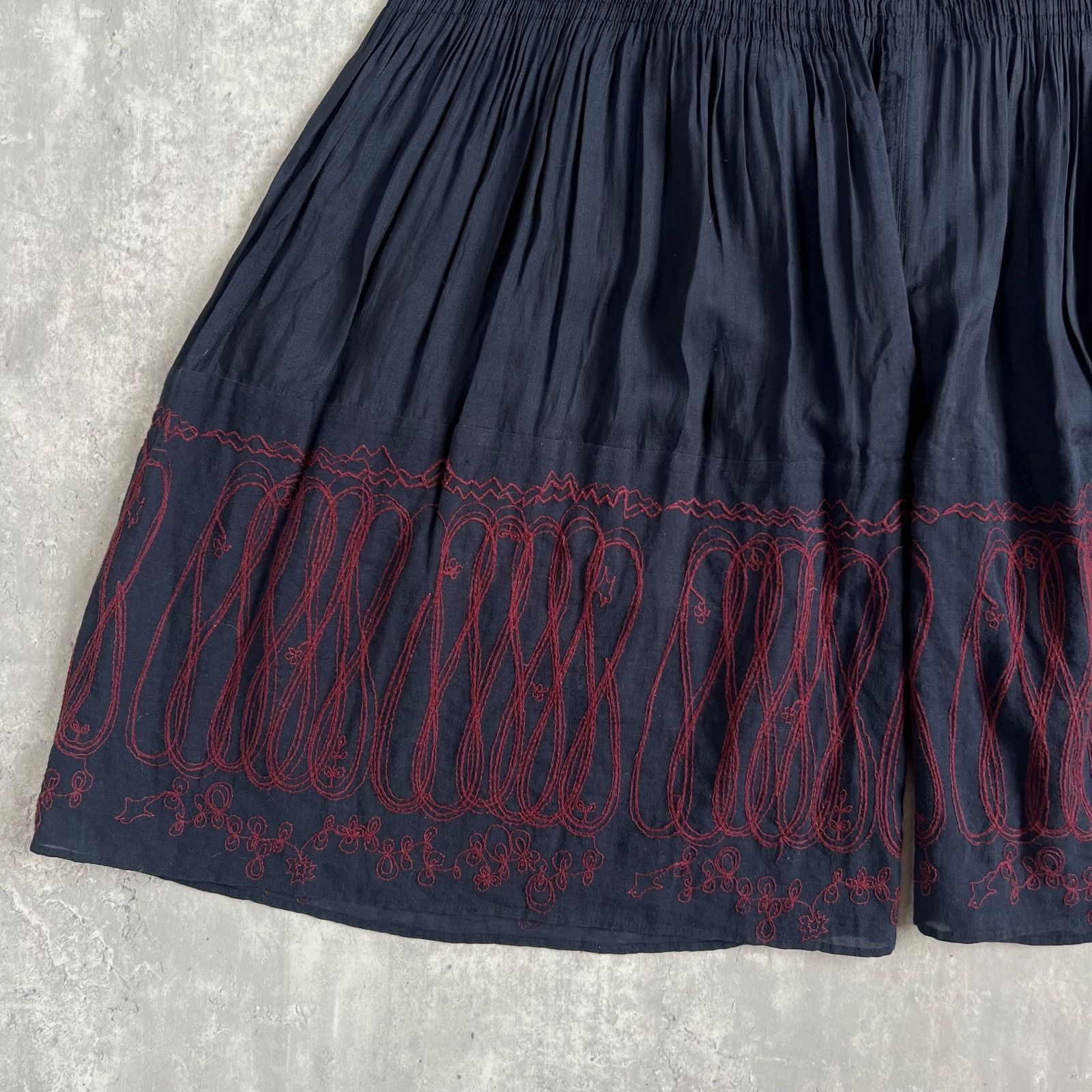ドゥロワー 23SS コットン エンブロ 刺繍 レース ワイド パンツ スラックス ボトムス 6514-299-1320 ブラック 34