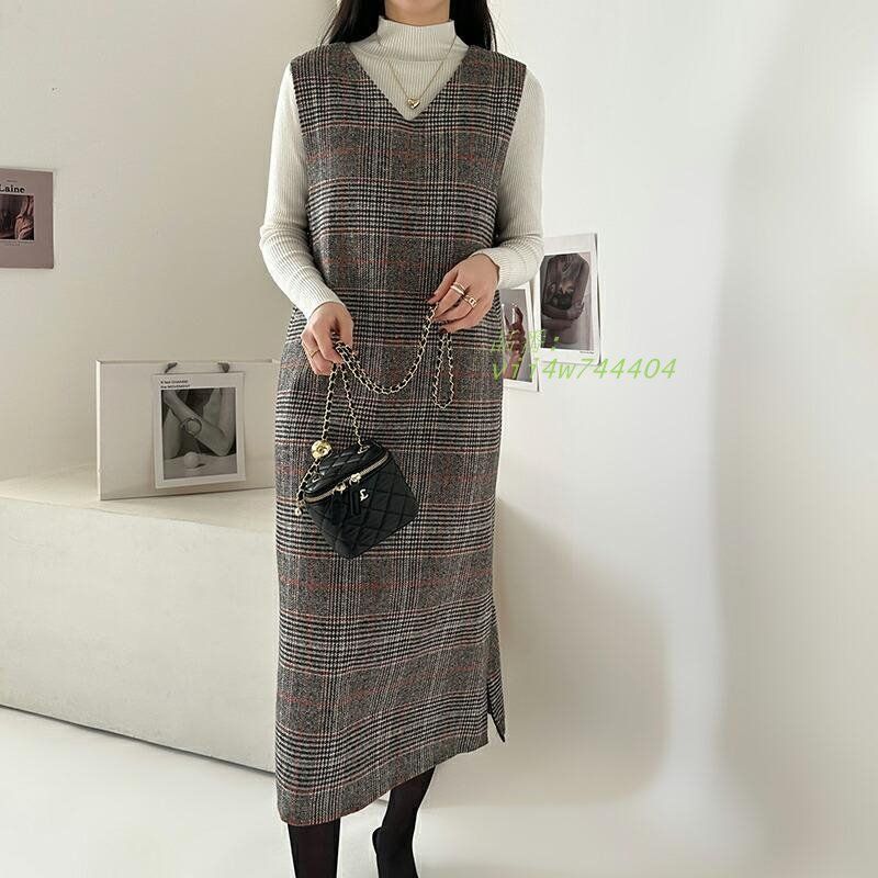 ジャンパースカート Vネック 大人 ジャンスカ レディース ジャンスカワンピース 韓国 ミディアム スカート 選べる長さ きれいめ チェック柄 ロング ワンピース vii4w744404 WWW_NICORILABO_COM