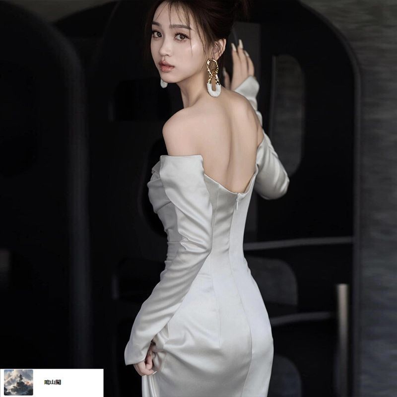 レディース 夏 気質優雅 小トレーン ウェディング風ドレス 白 長袖 サテン風 一字肩 フォト婚 礼服 旅撮 ss ♥の検索結果