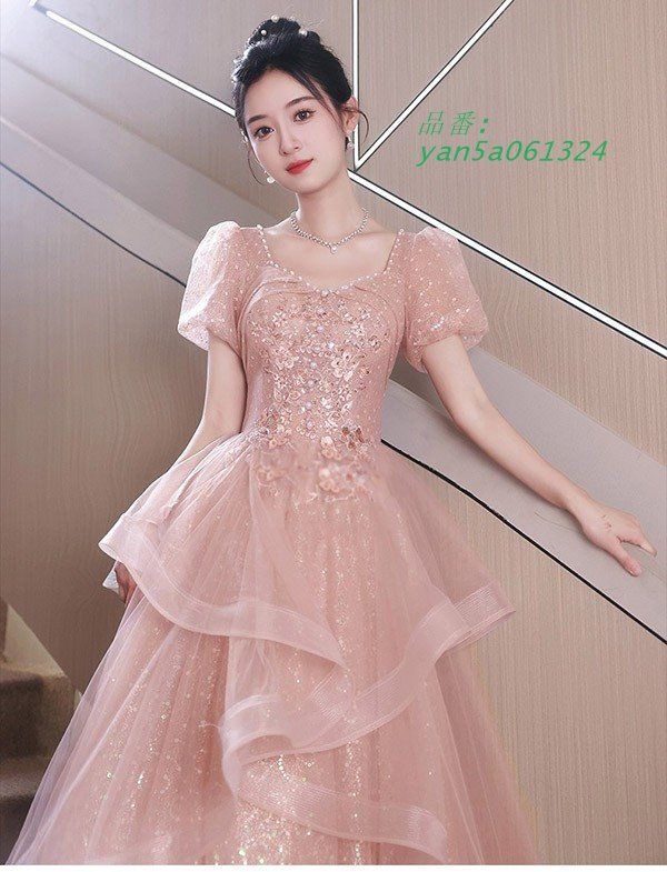 ロングドレス 演奏会 パーティードレス ロング丈 袖あり キラキラ 二次会 発表会 レディース 花嫁 ワンピース 結婚式 成人式 大きいサイズ フォーマルドレス am5a768021