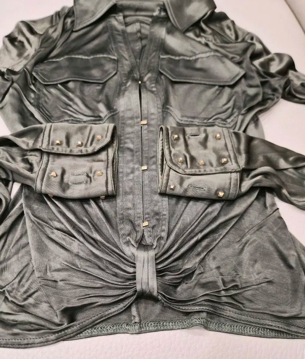 袖 部分には ゴールド 装飾 スタッズ 装飾 があり、スナップボタン で 2個 に なっています。