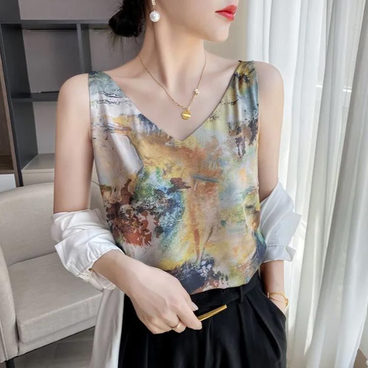 タイダイ染め ゆったり シルクインナー ストレッチ タンクトップ シルク ノースリーブ タイダイ染め トップス Vネック レディース おしゃれ S M L XL 2XL dkhsh591225 WWW_NICORILABO_COM