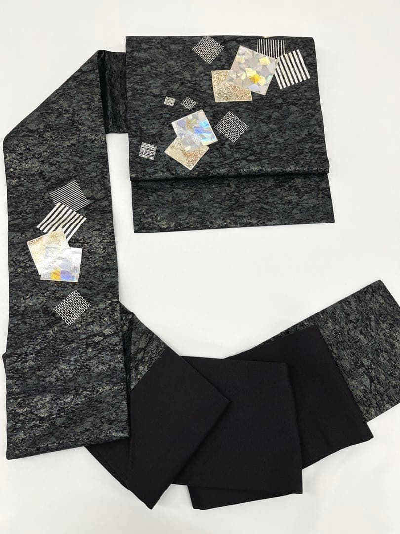 堀省平 九寸名古屋帯 落款入 金彩 幾何学模様 正絹 WWW_NICORILABO_COM