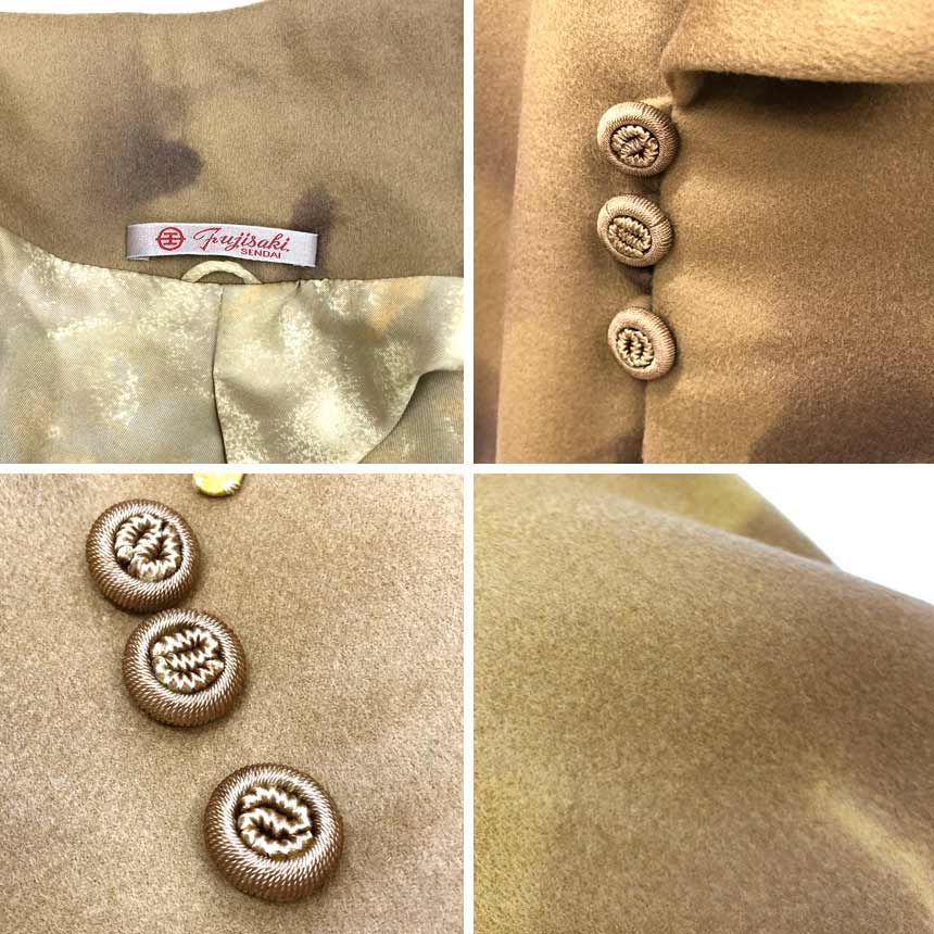 京やM458 着物コート 和装冬コート ウールコート 袷仕立て セミロング丈 裄長め ラグラン袖 船底袖 へちま衿仕立て キャメルブラウン フォーマル カジュアル兼用 仙台老舗百貨店 藤崎謹製 仕立て上がり 道行 道中着 羽織 リサイクル着物の検索結果