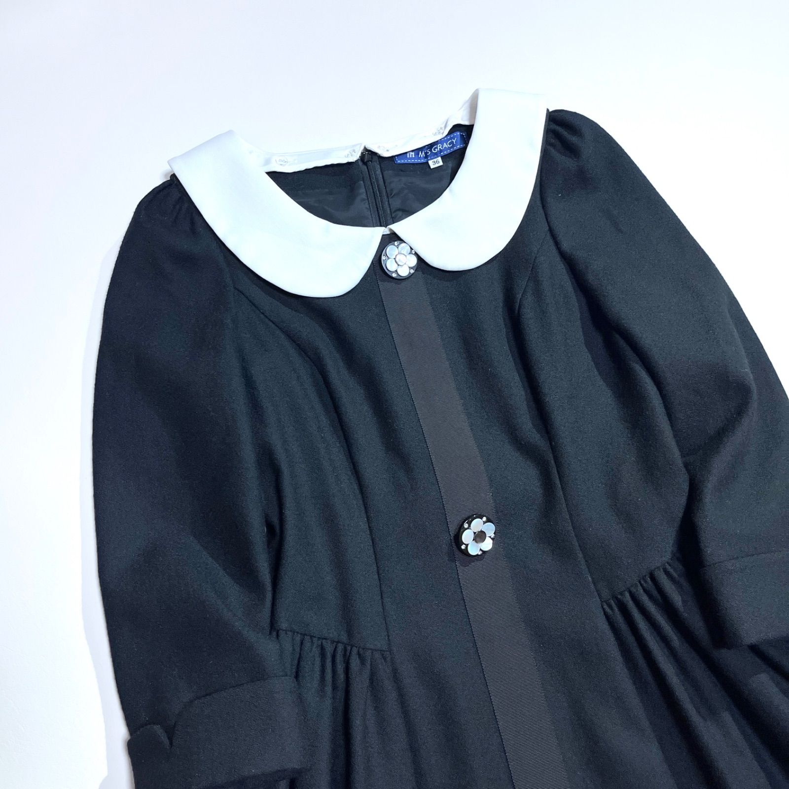 cj78 M’S GRACY ウール ワンピース 膝丈ワンピース サイドギャザー 付け襟 取り外し カメリアボタン 長袖 エムズグレイシー WWW_NICORILABO_COM