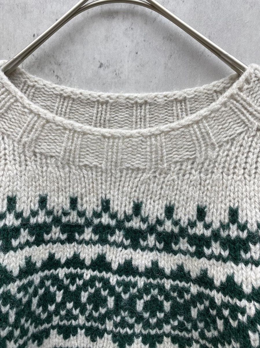 シェットランド アイルズウールンミルズ 英国製 ノルディックニット セーター size34|グレーホワイトx緑 ◆ ◎レディース WWW_NICORILABO_COM