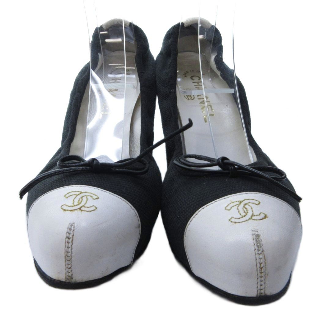 シャネル CHANEL バイカラー ココマーク リボン パンプス ヒール ラウンドトゥ 白 ホワイト 黒 ブラック 約24cm IBO81 WWW_NICORILABO_COM