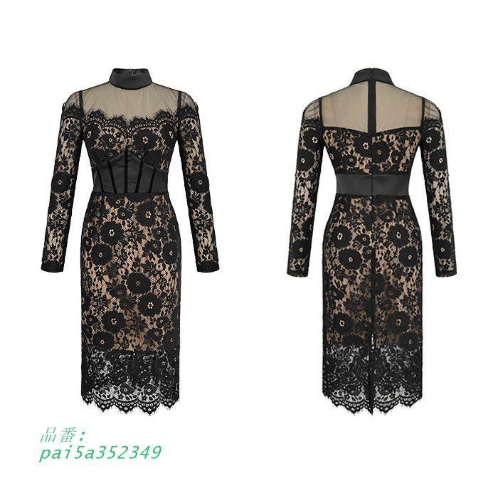 シースルーレース刺繍 ハイウエスト長袖膝丈タイトドレスワンピース 黒 結婚式 お呼ばれ キャバ 服 スナック ドレス 韓国 pai5a352349 WWW_NICORILABO_COM