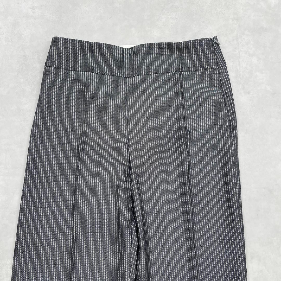 ARMANI COLLEZIONI アルマーニ コレツォーニ ストライプ柄 セットアップ ノーカラージャケット ワイドパンツ グレー 44 ウール レーヨン コットン シルク WWW_NICORILABO_COM