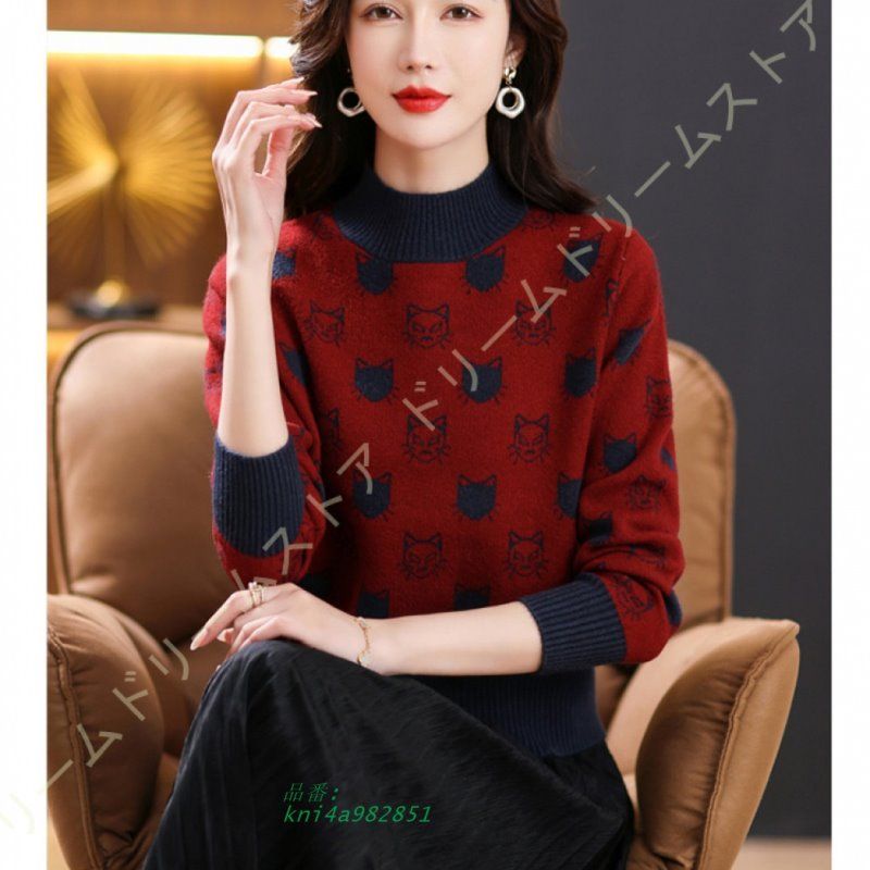 リブニット トップス ニットソー 長袖 ハイネック セーター シンプル リブ編み セクシー プルオーバー 猫柄 レディース かわいい クリスマス ニットセーター kni4a982851 WWW_NICORILABO_COM