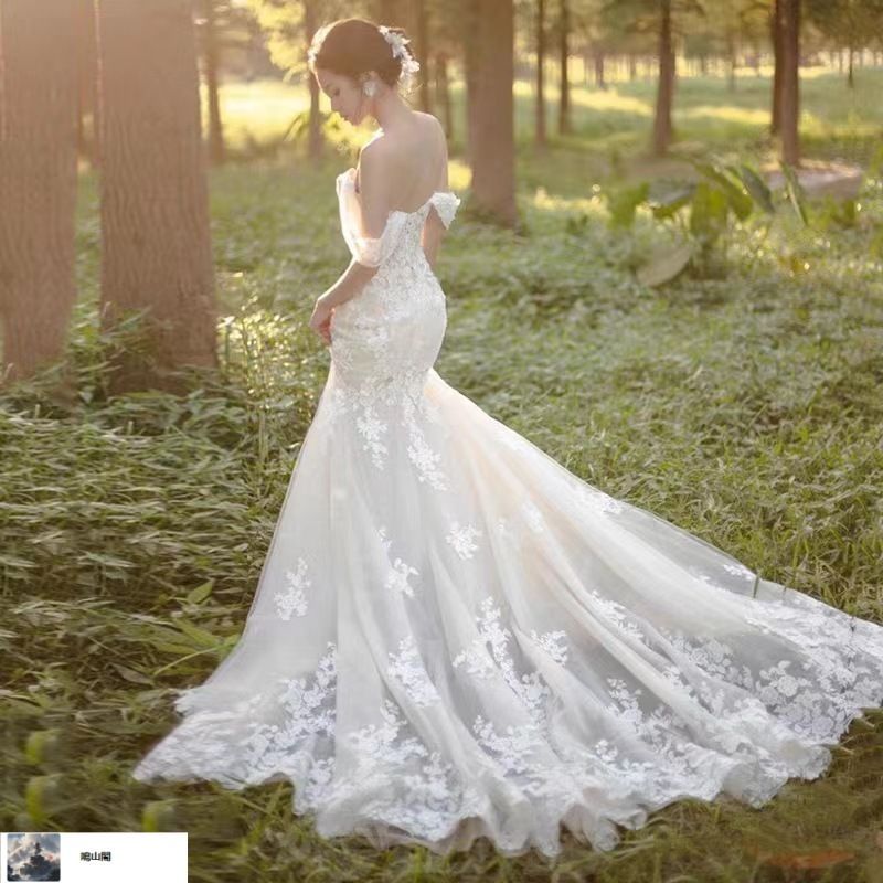2025 一字肩レースマーメイドドレス 小トレーン花嫁用 フランス風 上品旅撮ウェディング XS~3XLの検索結果