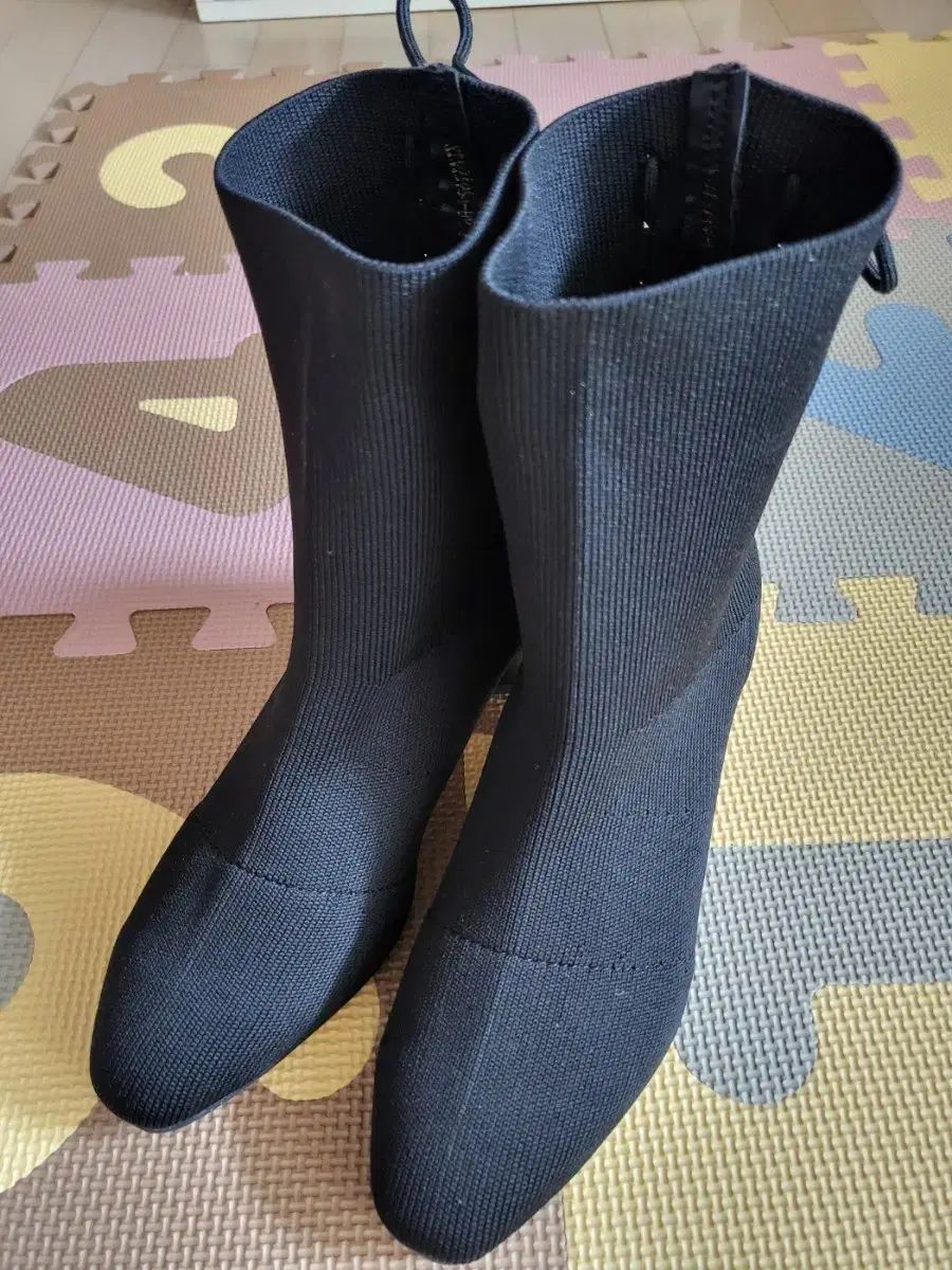 これらはタイトな黒のソックスアンクルブーツです。ヒールがある程度あるので、脚のラインが綺麗に見えます。背面にはドローストリングのディテールがあり、さらにスタイリッシュになっています。他に質問がない場合は、すぐに安全な支払いを行ってください!