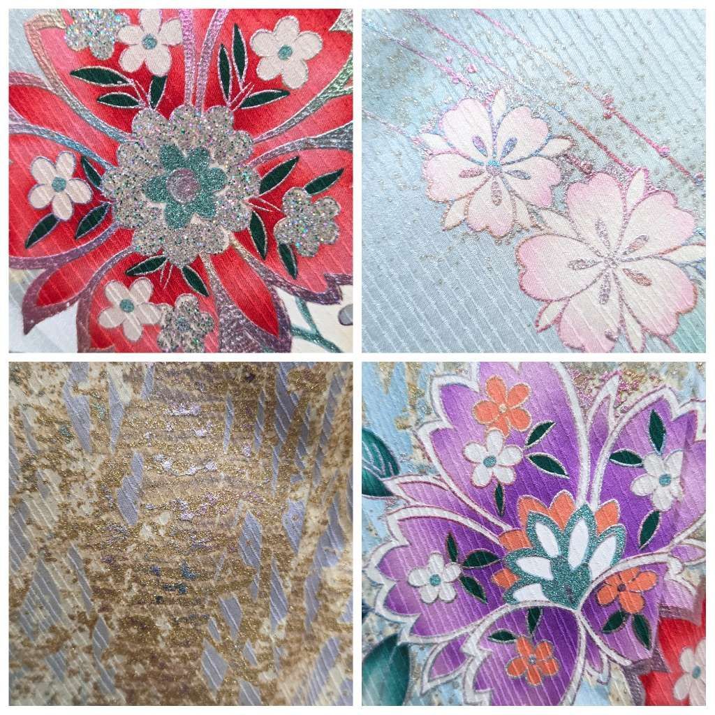 D◆着物くつろぎ 振袖 襦袢セット かわいい花模様 金彩 ラメ キラキラ 水色 袷 正絹 成人式 着物の検索結果