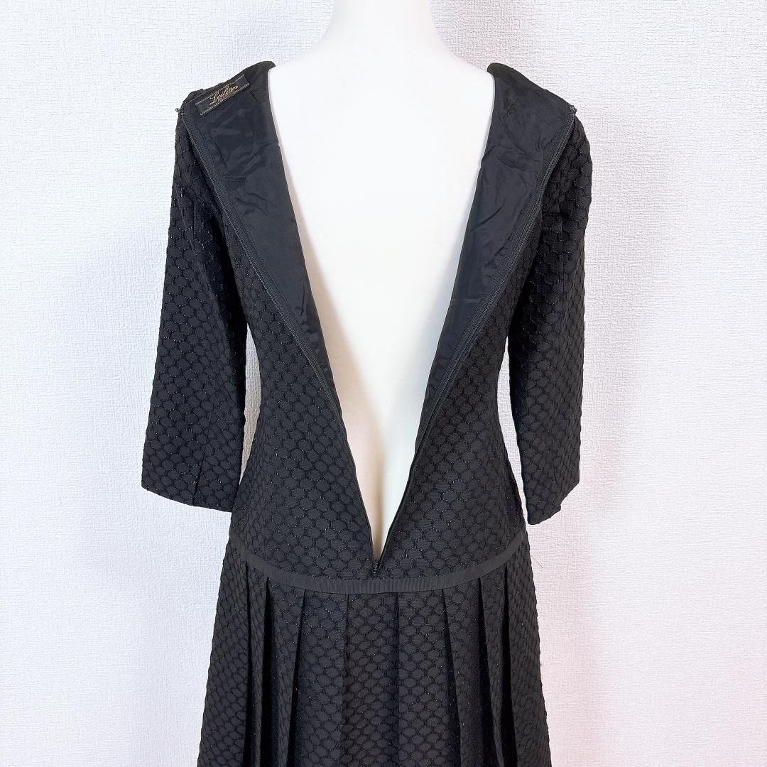 • レリアン ギャザープリーツ光沢刺繍ワンピース