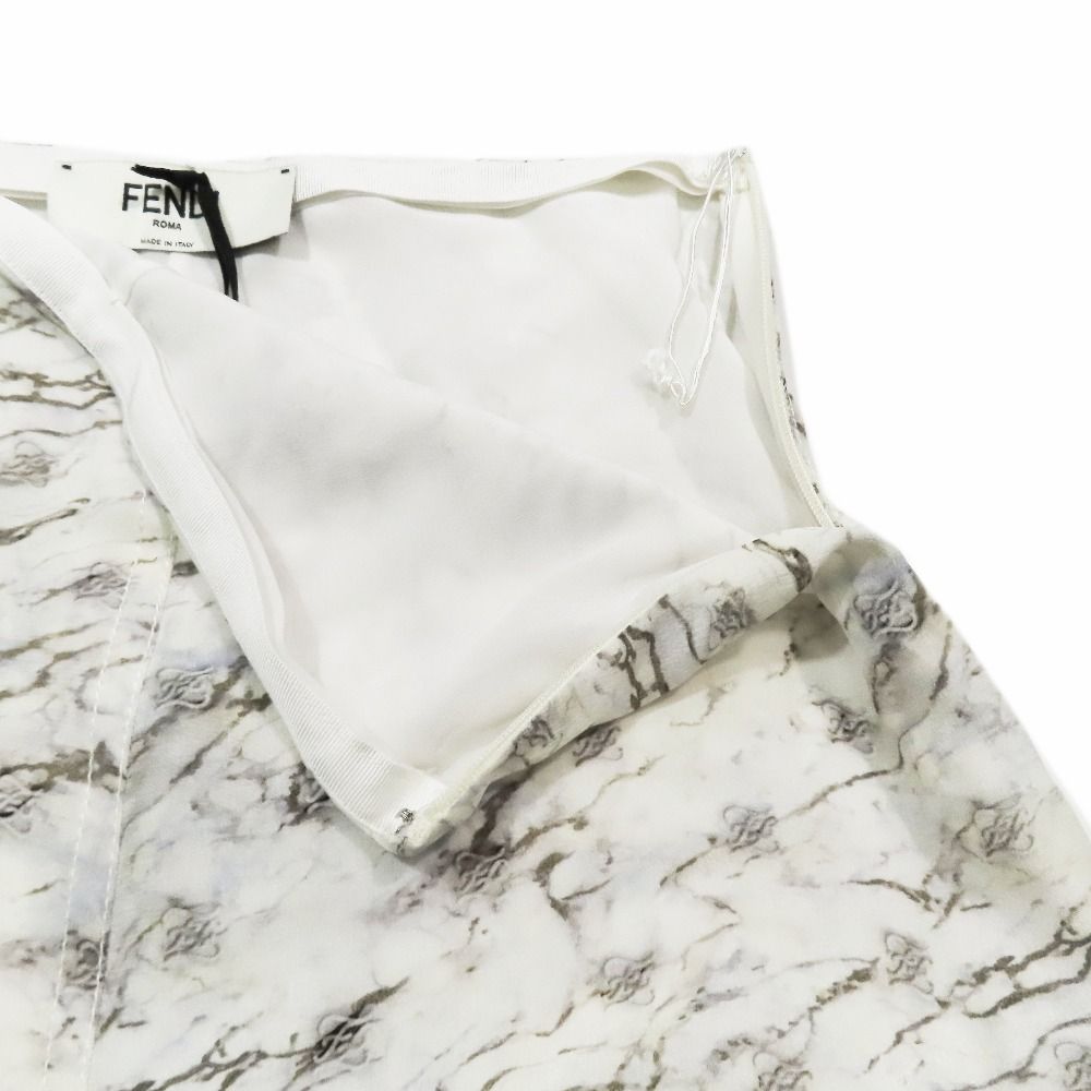 ♥ 21年製 FENDI フェンディ カリグラフィ FFロゴ ズッカ アシンメトリー フ スカート ロング ミモレ丈 総柄 36 アイボリー レディース 古着 WWW_NICORILABO_COM