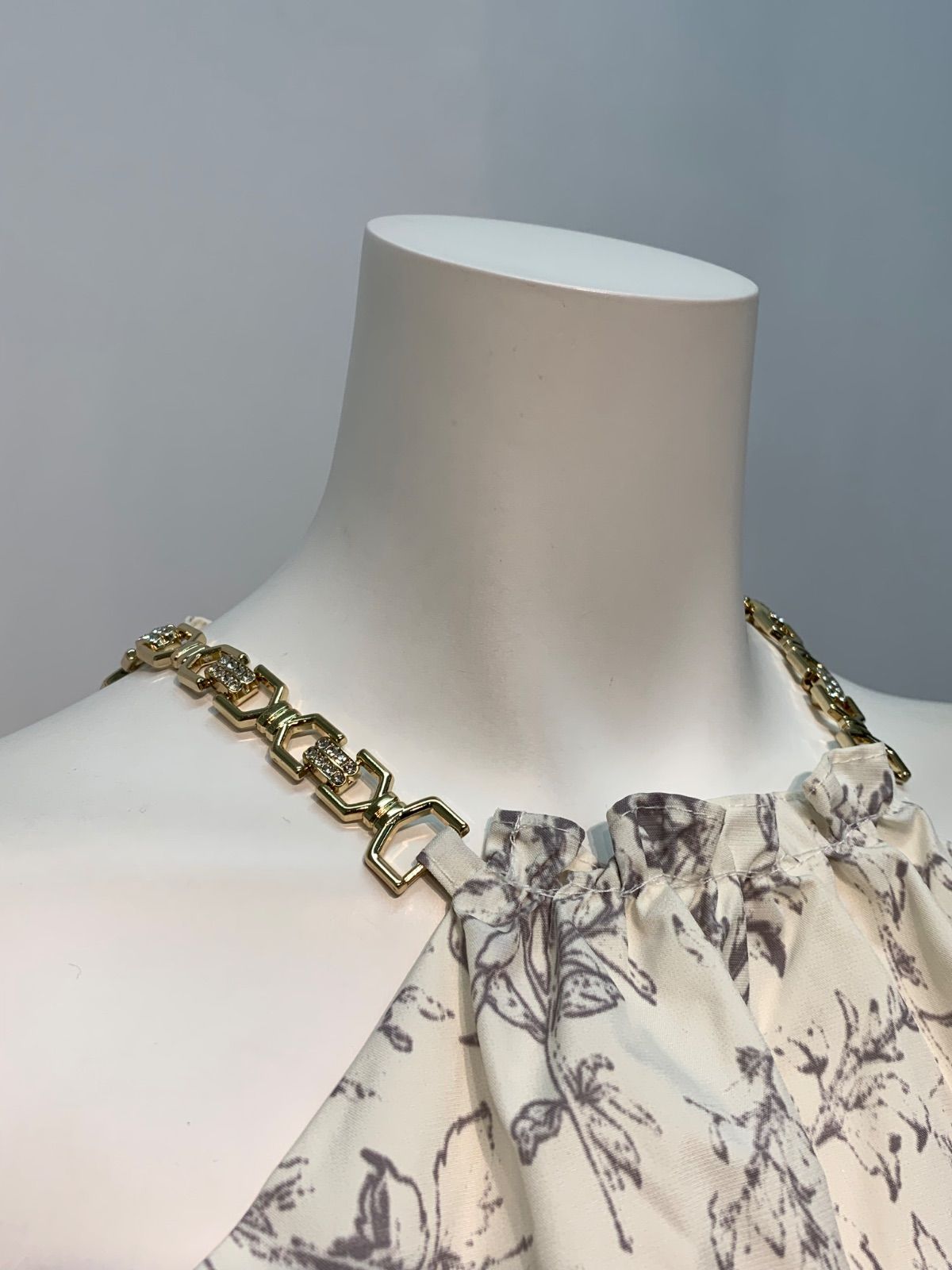 1533 DEA by ROBE de FLEURS ディアバイローブドフルール キャバクラ ドレス 花柄プリントツイル ロングドレス ゴールドチェーン ストーン ホルターネック キャバドレス S WWW_NICORILABO_COM