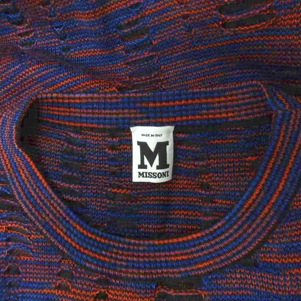 ミッソーニ MISSONI ニットワンピース ミモレ ロング デザイン ローゲージ 長袖 L 赤 レッド 青 ブルー FDA9A5AB-MM2382 WWW_NICORILABO_COM