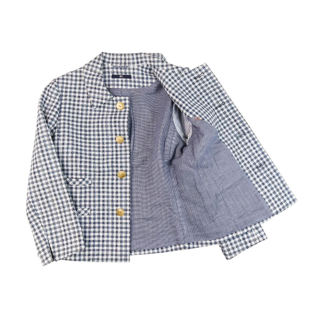 45R 和紙藍ツイード ジャケット スカート セットアップ 2点セット 8034025 サイズ2 ホワイト ライトブルー レディース 古着 WWW_NICORILABO_COM