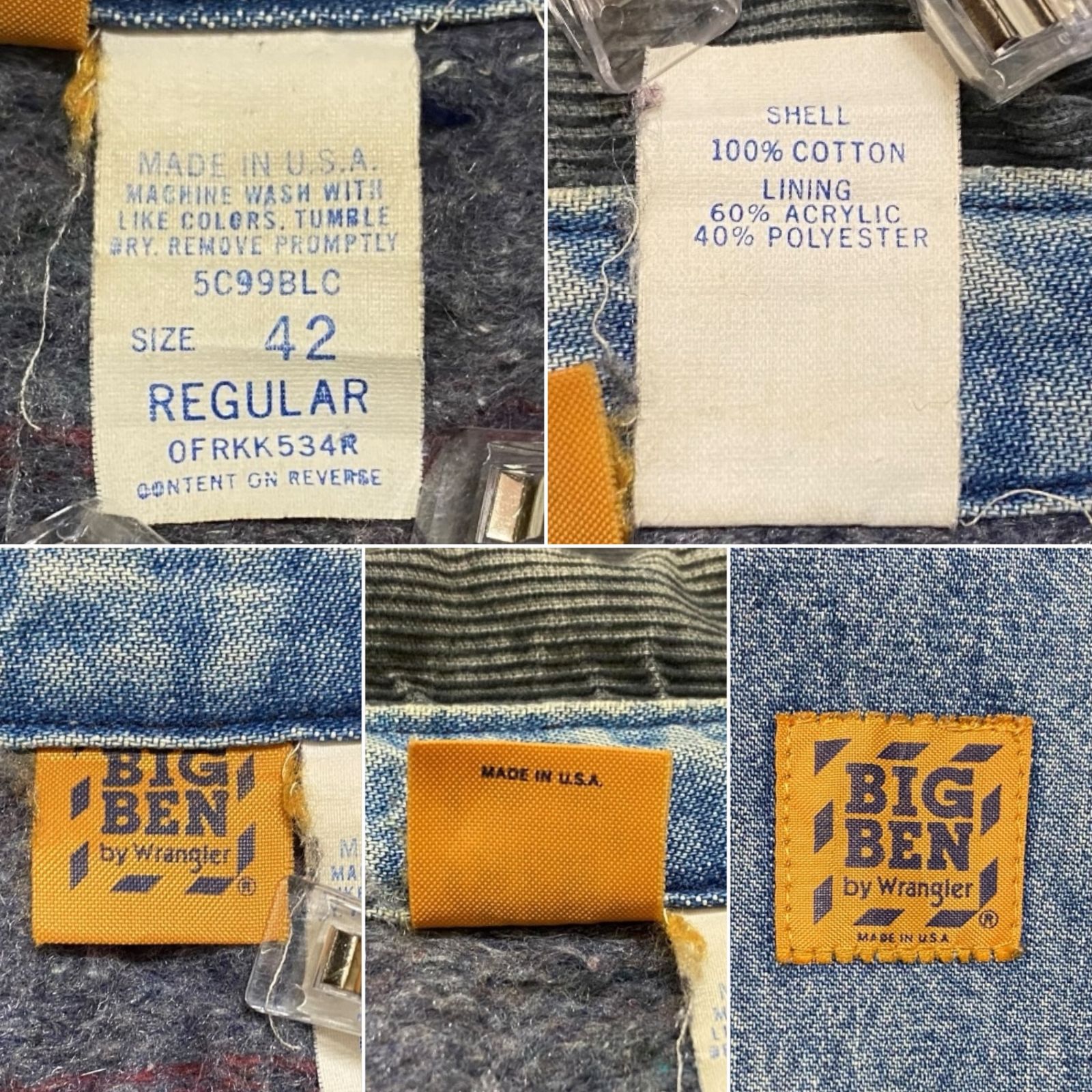 BIG BEN ビッグベン ラングラー デニムカバーオール 裏ブランケット 襟コーズ 古着 70s 80s 42-R メンズ 078 WWW_NICORILABO_COM
