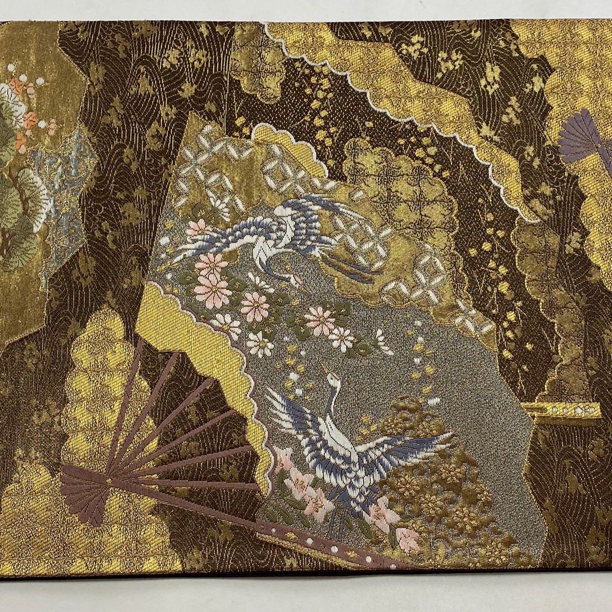 袋帯 秀品 扇 鶴 金糸 箔 金茶 六通 正絹の検索結果