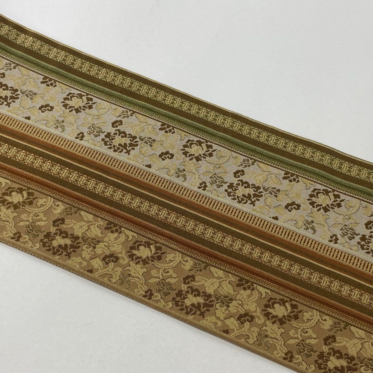 名古屋帯 秀品 花唐草 縞 薄茶色 正絹 WWW_NICORILABO_COM