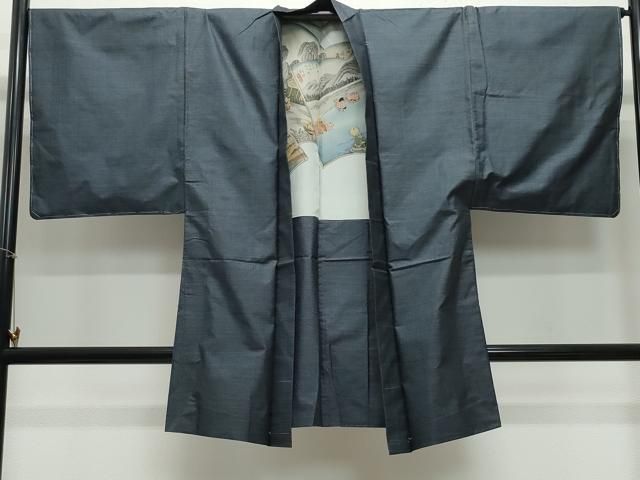 平和屋着物 上 男性 紬 アンサンブル 長羽織 色無地 錆鉄御納戸色 ♥ DZAA9879kh5