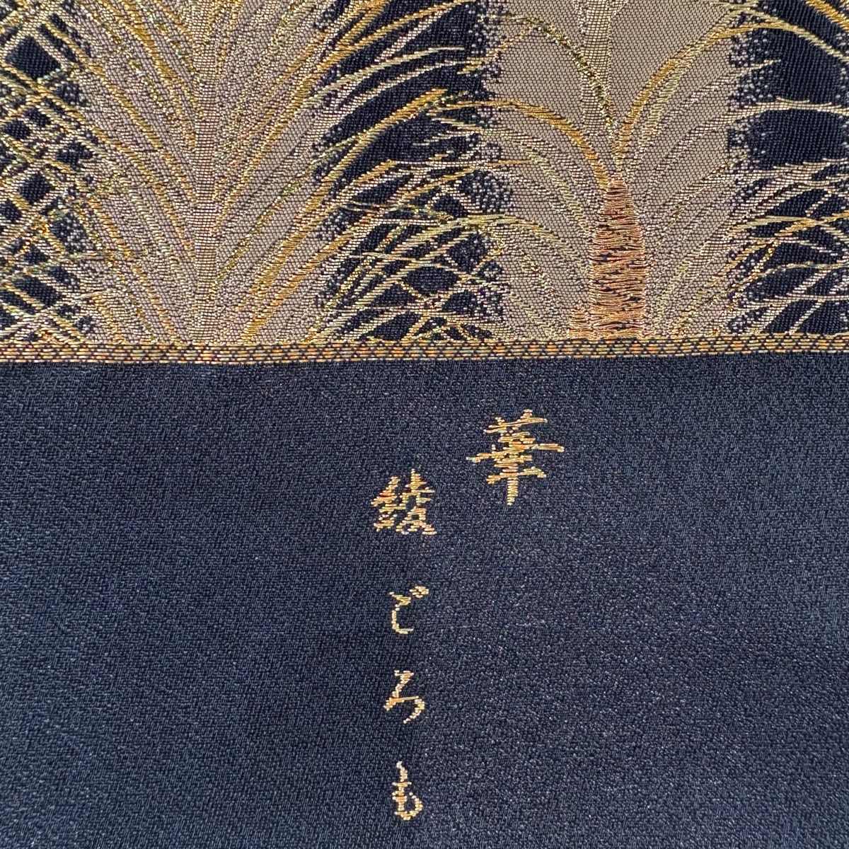 袋帯 秀品 草花 花菱 箔 金色 六通 正絹