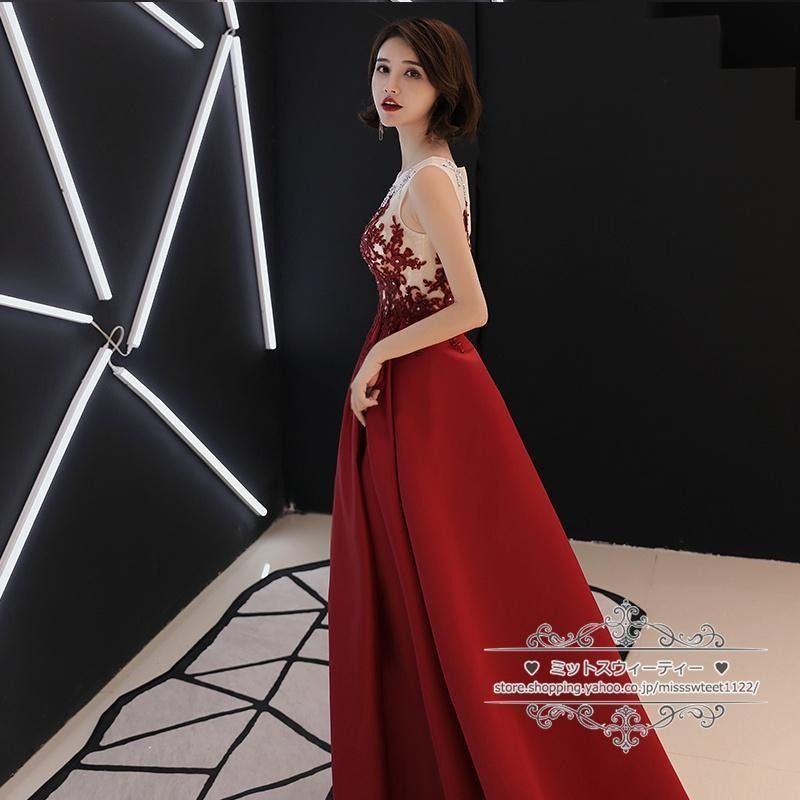 カクテルドレス ロングドレス パーティードレス 発表会 演奏会 ステージドレス イブニングドレス 大人 赤 ワインレッド ノースリーブ ファスナー WWW_NICORILABO_COM