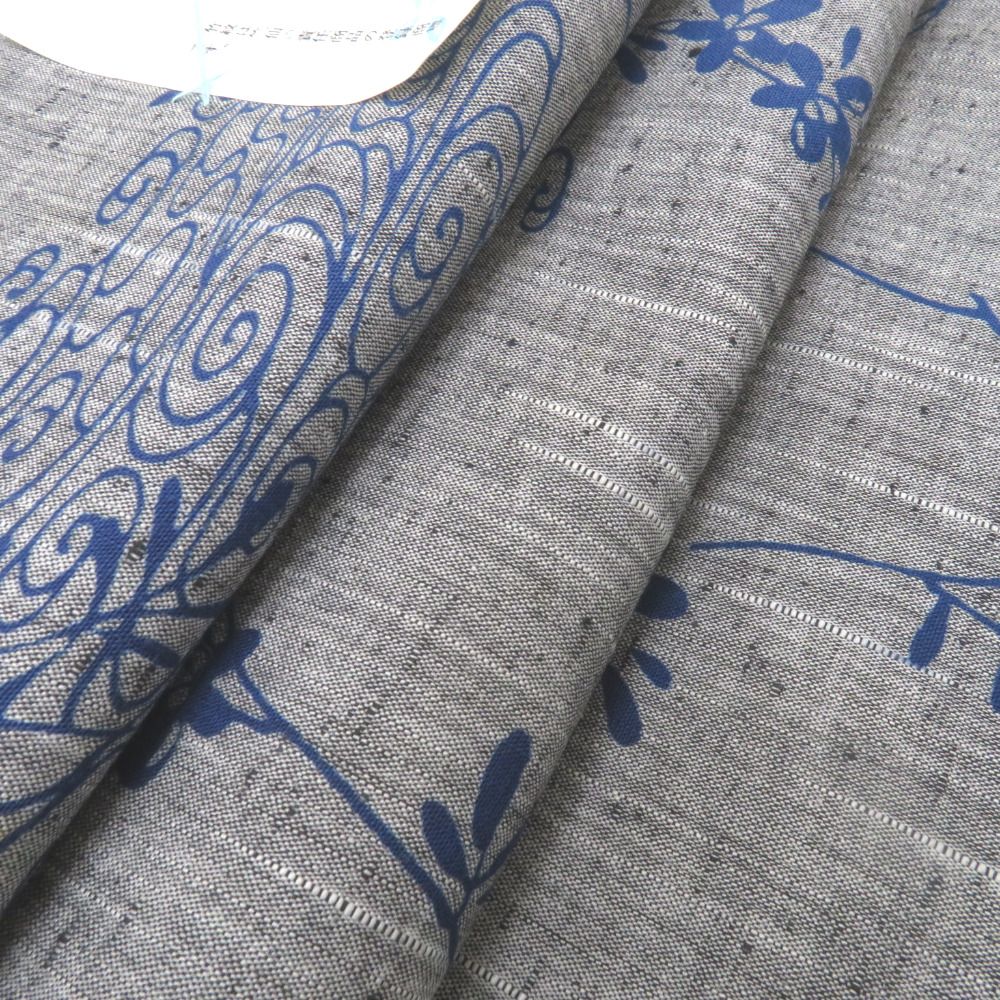 竺仙 ちくせん 反物 竺仙 浴衣反物 紬ゆかた グレー地 ブルー系グラデーション 観世水 草花 糸止め有 綿100% 長さ11.9m ちくせん WWW_NICORILABO_COM