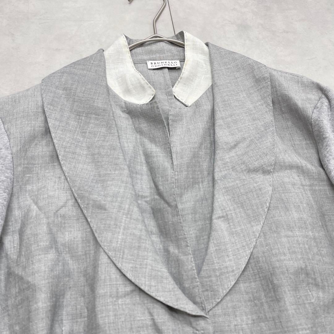 BRUNELLO CUCINELLI ブルネロクチネリ レイヤードジャケット ベルト 異素材 リネン コットン グレー レディース 44 WWW_NICORILABO_COM