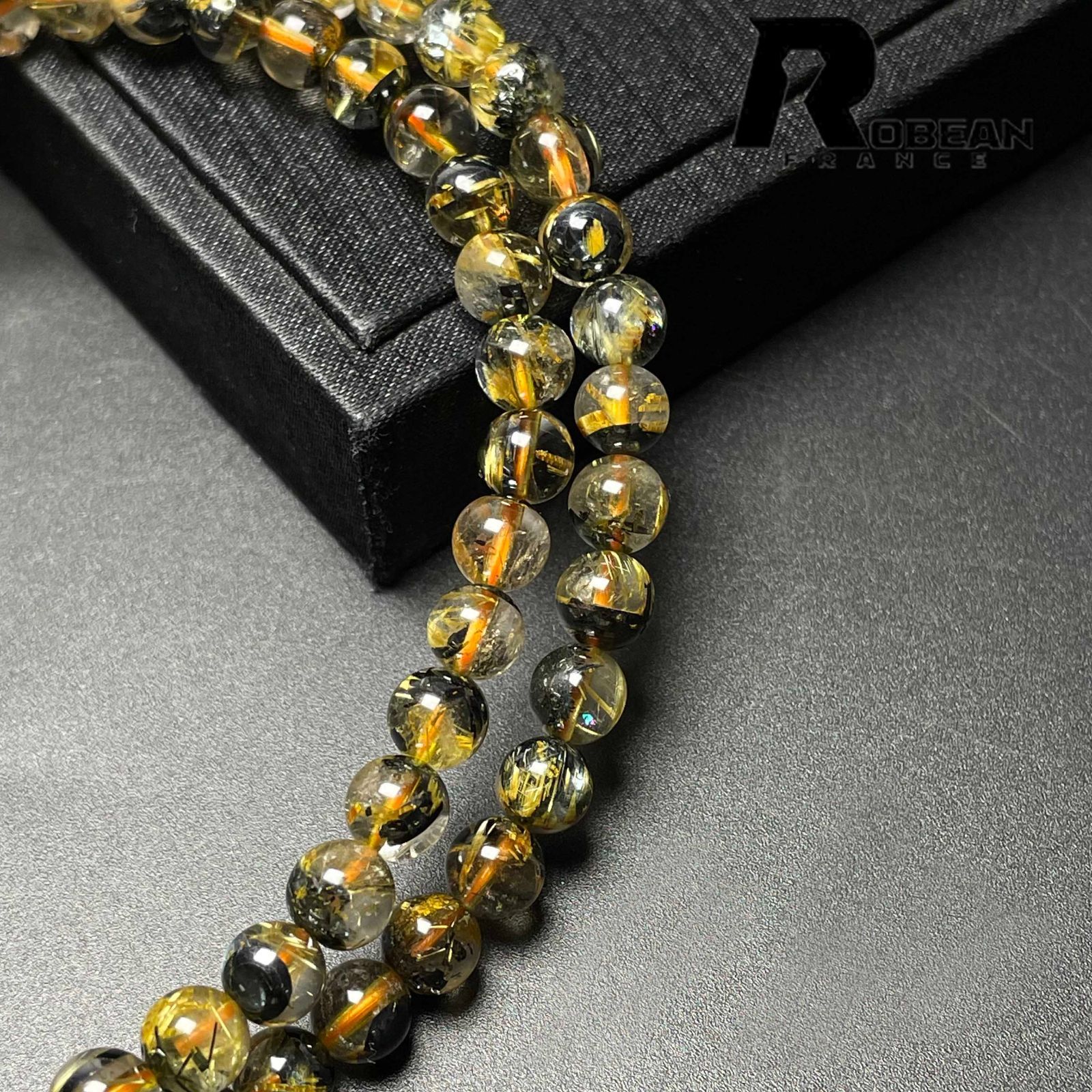 EU製 定価14万円 ROBEAN タイチンルチル 黄金針水晶 ゴールド 金運 開運 3本巻きブレスレット パワーストーン プレゼント 5.8-6.2mm M1023838